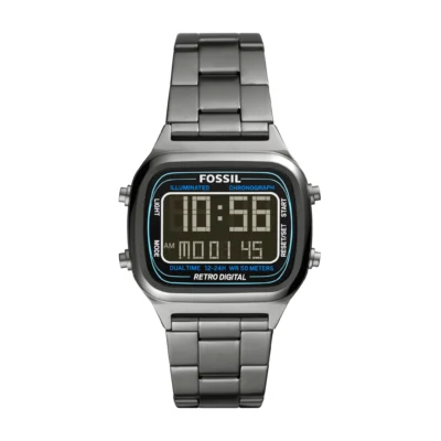 Fossil Retro Digital Black Dial Black Steel Strap Watch for Men – FS5846