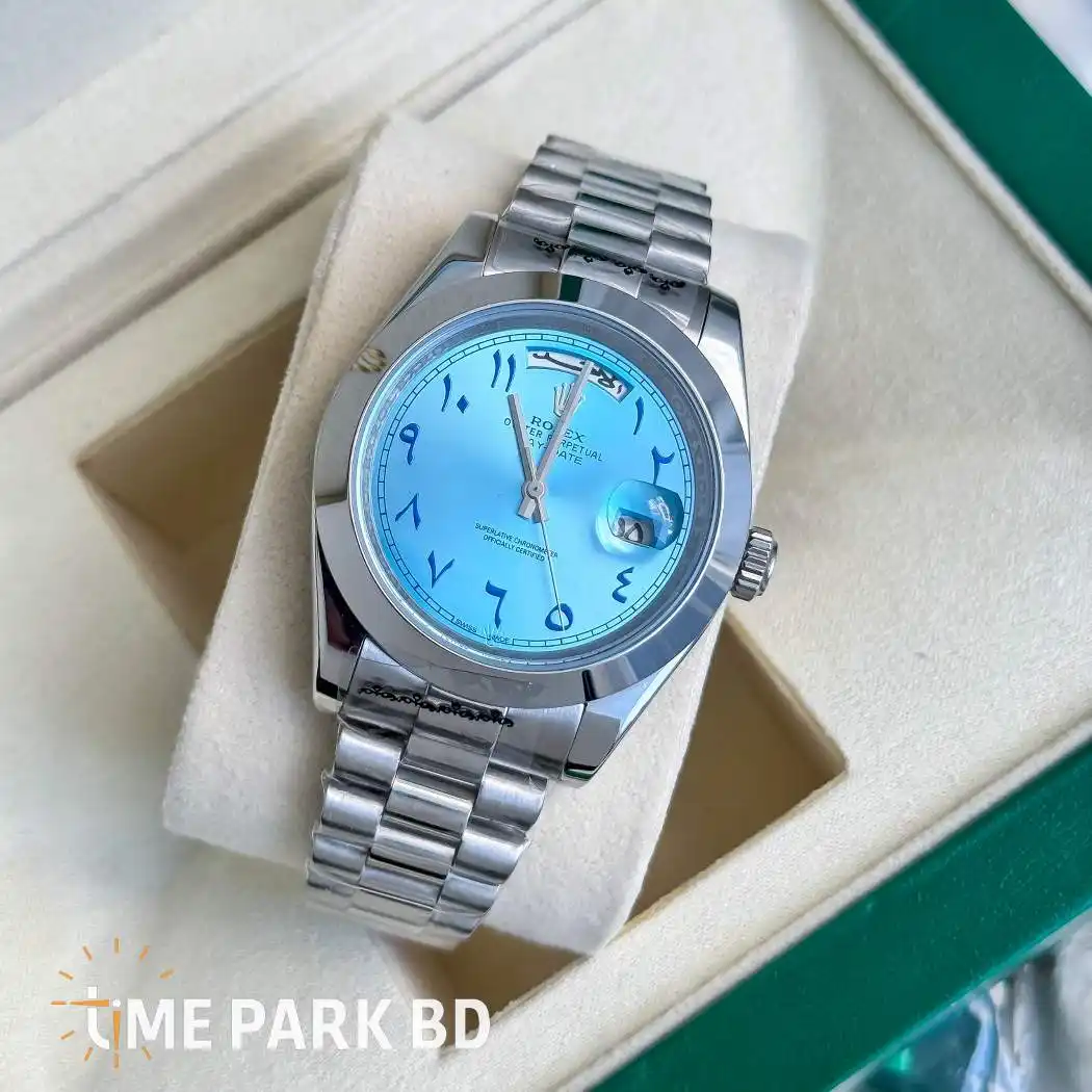 gn, precision movement, and premium build quality.”Elevate your style with the Rolex Day-Date Tiffany Blue Arabic Dial, a watch that blends elegance and functionality. Shop now at TimeParkBD for authentic luxury watches in Bangladesh!