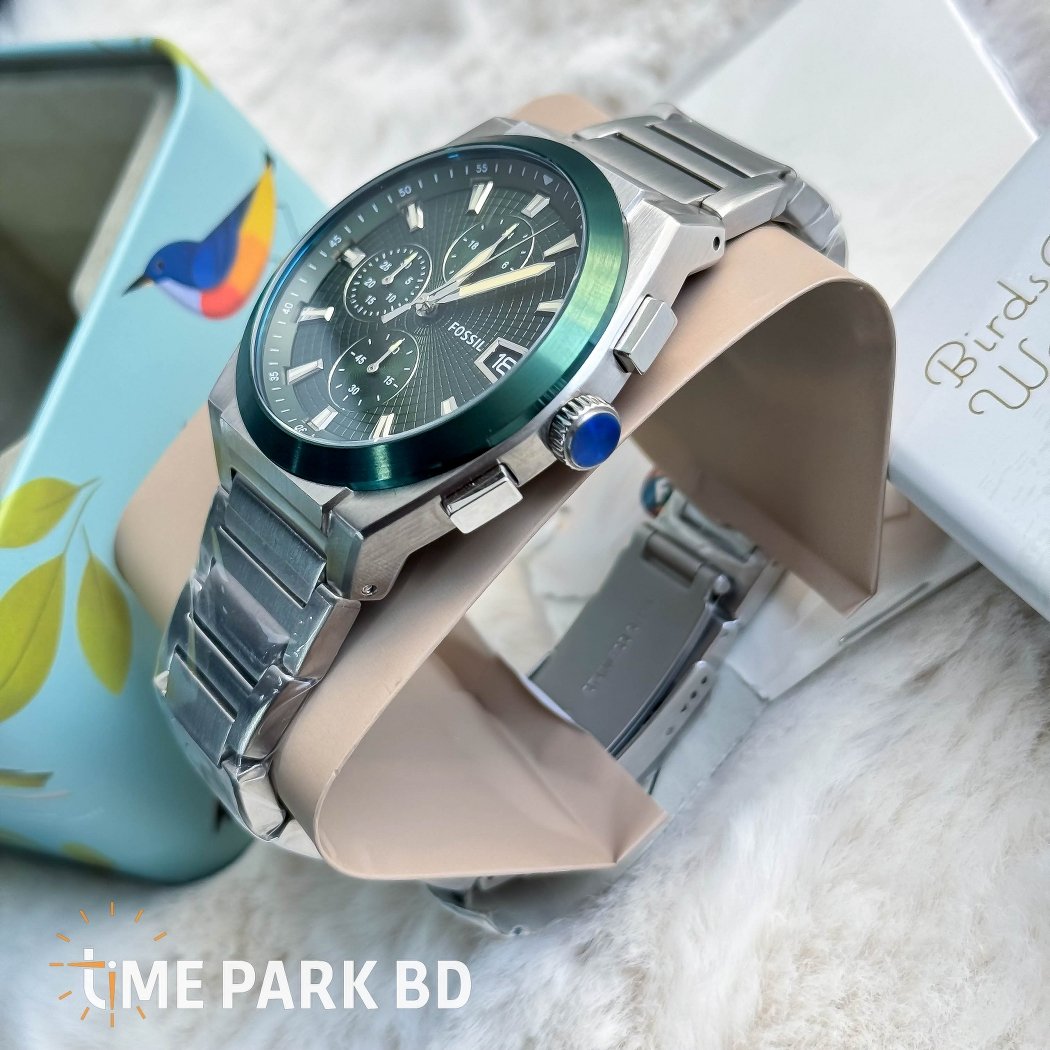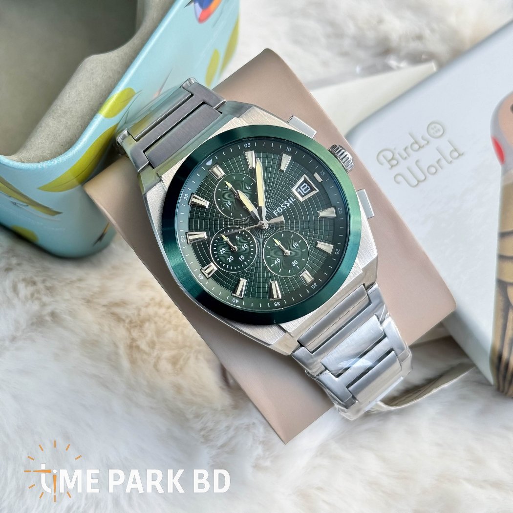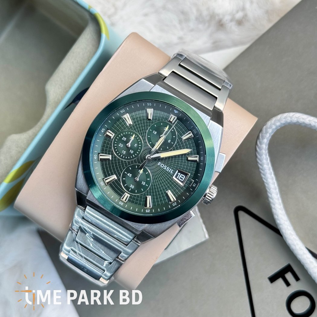 The Fossil Everett Chronograph FS5964 combines bold design with reliable function. Featuring a green dial, stainless steel case, chronograph features, and official Fossil warranty in Bangladesh.