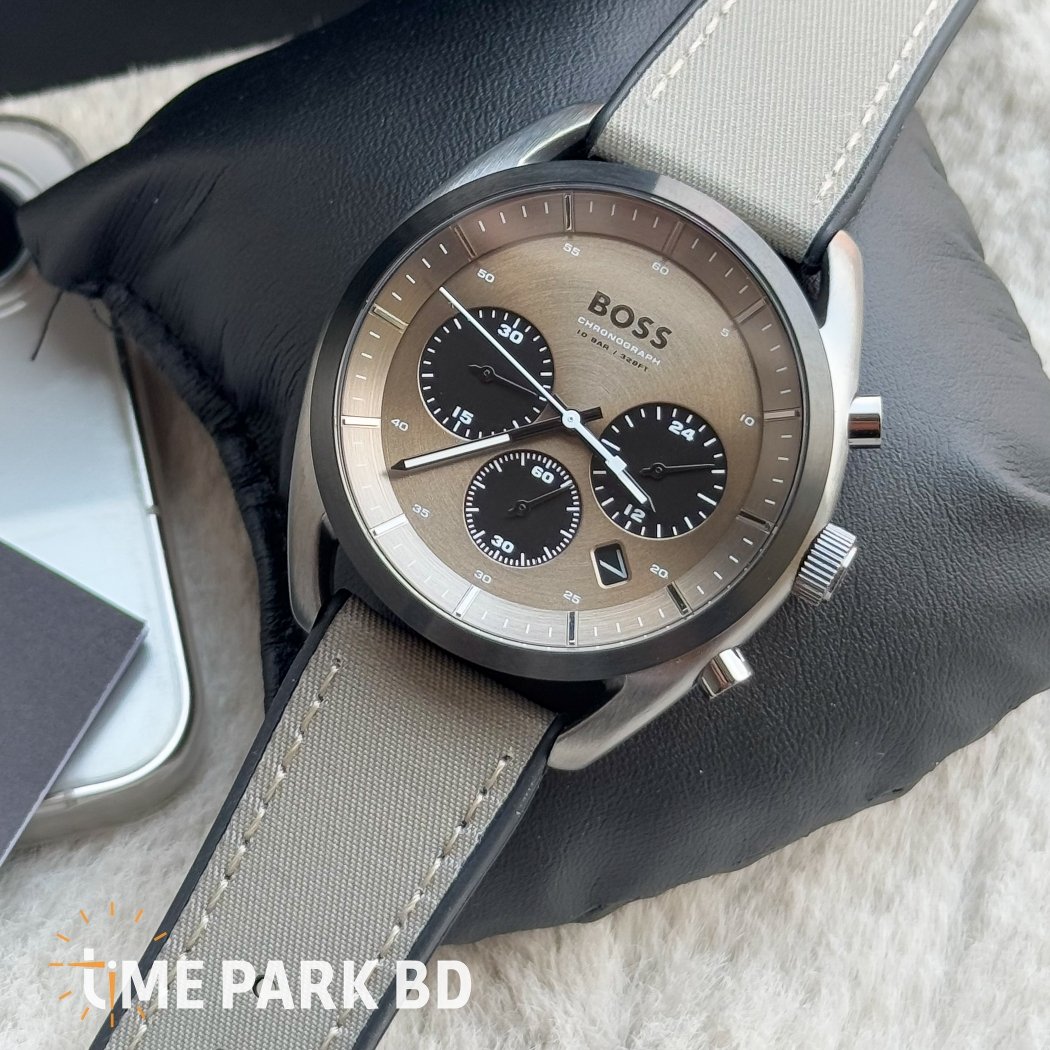 Crafted for the modern gentleman, this timepiece combines functionality with signature Hugo Boss style. The khaki dial offers a bold yet versatile look, enhanced by sleek chronograph subdials and silver-tone detailing.