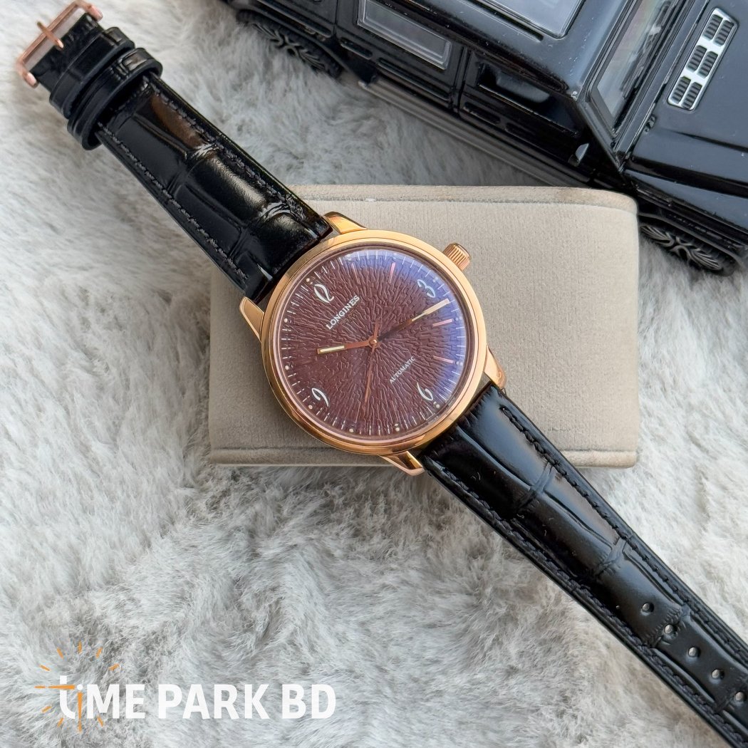 Longiness Automatic movement | White dial leather belt watch |Classic vibe Bronze Dial